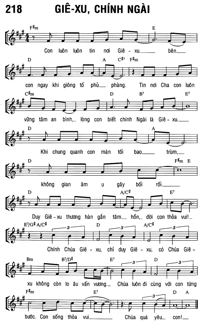 1. Con luôn luôn tin nơi Giê-xu bên con ngay khi giông tố phủ phàng. Tin nơi Cha con luôn vững tâm an bình, lòng con biết chính Ngài là Giê-xu. Khi chung quanh con màn tối bao trùm, không gian âm u gây bối rối. Duy Giê-xu thương hàn gắn tâm hồn, đời con thỏa vui! Chính Chúa Giê-xu, chỉ duy Giê-xu, có Chúa Giê-xu không còn lo âu vấn vương. Chúa luôn đi cùng với con từng bước. Con sống thỏa vui. Chúa quá yêu con!