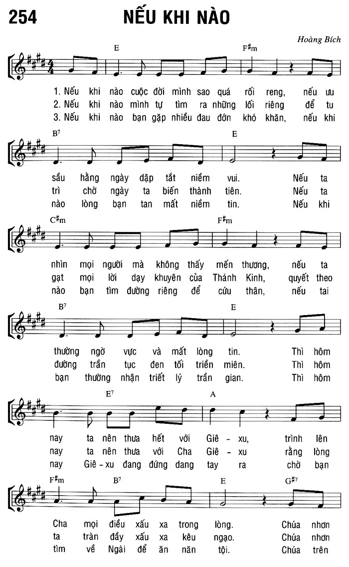 1. Nếu khi nào cuộc đời mình sao quá rối reng, nếu ưu sầu hằng ngày dập tắt niềm vui. Nếu ta nhìn mọi người mà không thấy mến thương, nếu ta thường ngờ vực và mất lòng tin. Thì hôm nay ta nên thưa hết với Giê-xu, trình lên Cha mọi điều xấu xa trong lòng. Chúa nhơn 2. Nếu khi nào mình tự tìm ra những lối riêng để tu trì chờ ngày ta biến thành tiên. Nếu ta gạt mọi lời dạy khuyên của Thánh Kinh, quyết theo đường trần tục đen tối triền miên. Thì hôm nay ta nên thưa với Cha Giê-xu rằng lòng ta tràn đầy xấu xa kêu ngạo. Chúa nhơn 3. Nếu khi nào bạn gặp nhiều đau đớn khó khăn, nếu khi nào lòng bạn tan mất niềm tin. Nếu khi nào bạn tìm đường riêng để cứu thân, nếu tai bạn thường nhận triết lý trần gian. Thì hôm nay Giê-xu đang đứng dang tay ra chờ bạn tìm về Ngài để ăn năn tội. Chúa trên