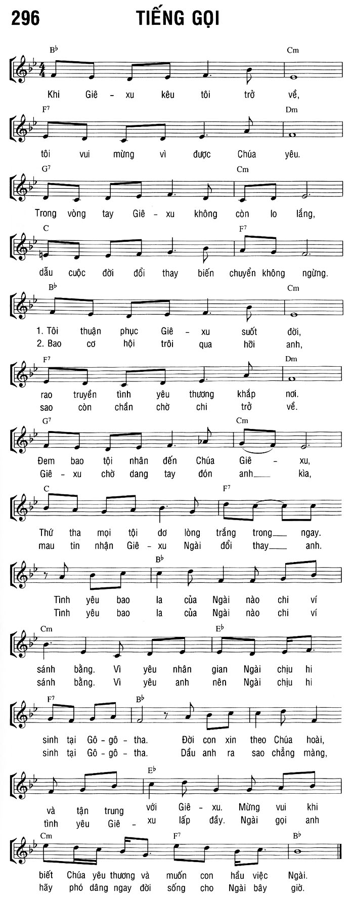 1. Khi Giê-xu kêu tôi trở về, tôi vui mừng vì được Chúa yêu. Trong vòng tay Giê-xu không còn lo lắng, dẫu cuộc đời đổi thay biến chuyển không ngừng. Tôi thuận phục Giê-xu suốt đời, rao truyền tình yêu thương khắp nơi. Đem bao tội nhân đến Chúa Giê-xu, Thứ tha mọi tội dơ lòng trắng trong ngay. Tình yêu bao la của Ngài nào chi ví sánh bằng. Vì yêu nhân gian Ngài chịu hi sinh tại Gô-gô-tha. Đời con xin theo Chúa hoài, và tận trung với Giê-xu. biết Chúa yêu thương và muốn con hầu việc Ngài. 2. Bao cơ hội trôi qua hỡi anh, sao còn chần chờ chi trở về. Giê-xu chờ dang tay đón anh, kìa, mau tin nhận Giê-xu Ngài đổi thay anh. Tình yêu bao la của Ngài nào chi ví sánh bằng. Vì yêu anh nên Ngài chịu hi sinh tại Gô-gô-tha. Dầu anh ra sao chẳng màng, tình yêu Giê-xu lấp đầy. Mừng vui khi Ngài gọi anh hãy phó dâng ngay đời sống cho Ngài bây giờ.