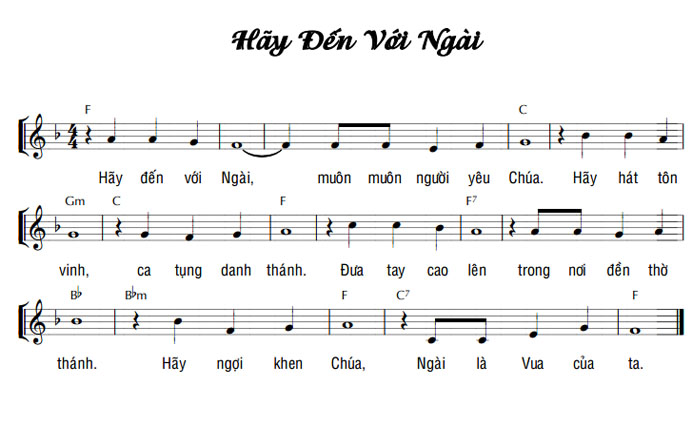 1. Hãy đến với Ngài, muôn muôn người yêu Chúa. Hãy hát tôn vinh, ca tụng danh thánh. Đưa tay cao lên trong nơi đền thờ thánh. Hãy ngợi khen Chúa, Ngài là Vua của ta.