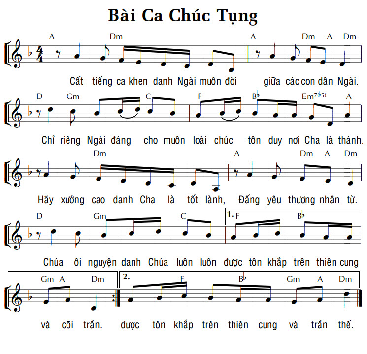 1. Cất tiếng ca khen danh Ngài muôn đời giữa các con dân Ngài. Chỉ riêng Ngài đáng cho muôn loài chúc tôn duy nơi Cha là thánh. Hãy xướng cao danh Cha là tốt lành, Đấng yêu thương nhân từ. Chúa ôi nguyện danh Chúa luôn luôn được tôn khắp trên thiên cung và cõi trần. 2. được tôn khắp trên thiên cung và trần thế.