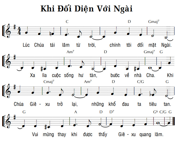 1. Lúc Chúa tái lâm từ trời, chính tôi đối mặt Ngài. Xa lìa cuộc sống hư tàn, bước về nhà Cha. Khi Chúa Giê-xu trở lại, những khổ đau ta tiêu tan. Vui mừng thay khi được thấy Giê-xu quang lâm.