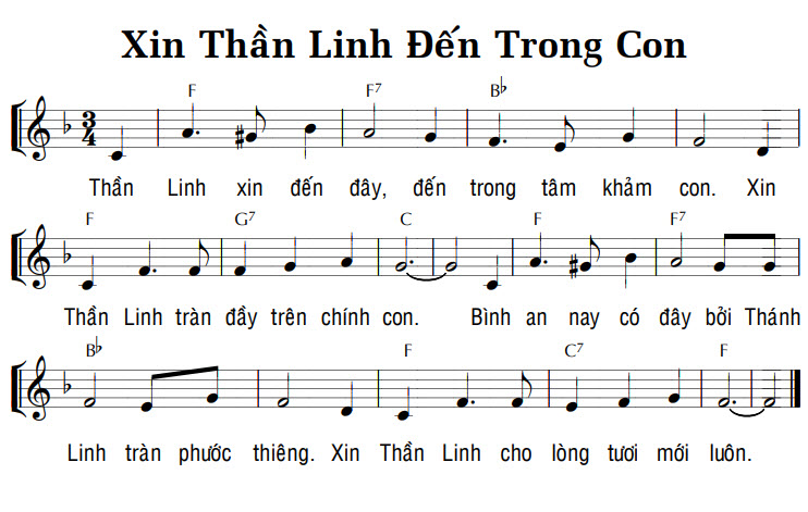1. Thần Linh xin đến đây, đến trong tâm khảm con. Xin Thần Linh tràn đầy trên chính con. Bình an nay có đây bởi Thánh Linh tràn phước thiêng. Xin Thần Linh cho lòng tươi mới luôn.