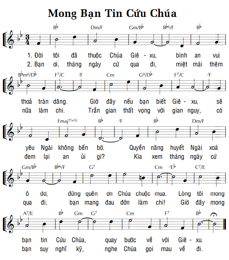 1. Đời tôi đã thuộc Chúa Giê-xu, bình an vui thoả tràn dâng. Giờ đây nếu bạn biết Giê-xu, sẽ yêu Ngài không bến bờ. Quyền năng huyết Ngài xoá ô dơ, đừng quên ơn Chúa chuộc mua. Lòng tôi mong bạn tin Cứu Chúa, quay bước về với Giê-xu. 2. Bạn ơi, tháng ngày cứ qua đi, miệt mài thêm nữa làm chi. Trần gian thất vọng với gian nguy, có đem lại an ủi gì? Kìa xem tháng ngày cứ qua đi, bạn mang đau đớn làm chi! Giờ đây mong bạn suy nghĩ kỹ, nghe Chúa gọi mau về đi.