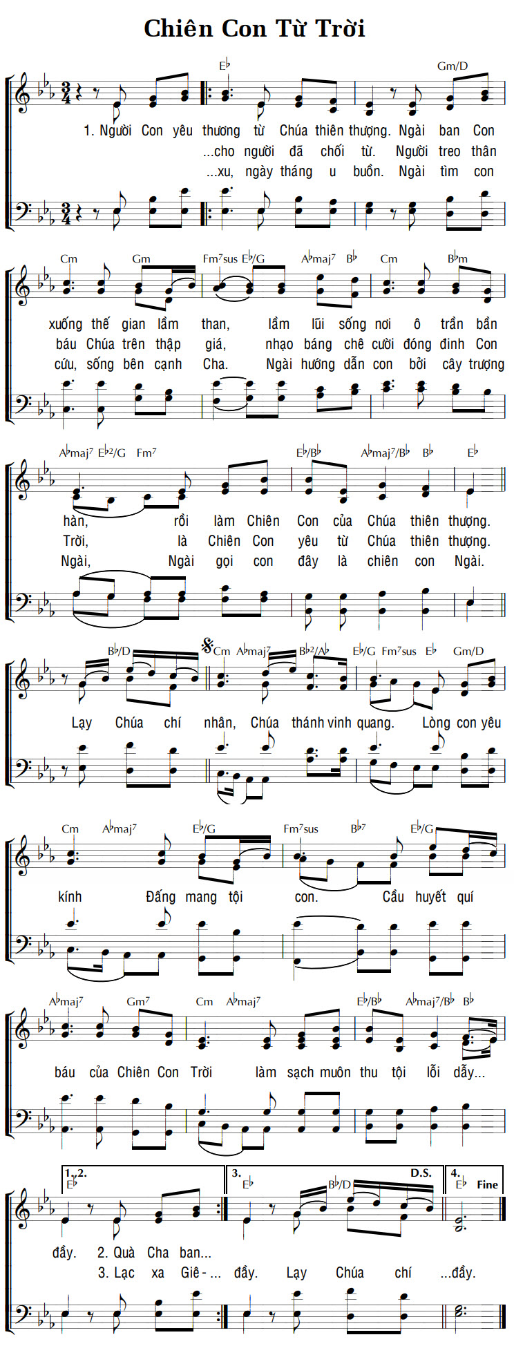 1. Người Con yêu thương từ Chúa thiên thượng. Ngài ban Con xuống thế gian lầm than, lầm lũi sống nơi ô trần bần hàn, rồi làm Chiên Con của Chúa thiên thượng. Lạy Chúa chí nhân, Chúa thánh vinh quang. Lòng con yêu kính Đấng mang tội con. Cầu huyết quí báu của Chiên Con Trời làm sạch muôn thu tội lỗi dẫy đầy. 2. Quà Cha ban cho người đã chối từ. Người treo thân báu Chúa trên thập giá, nhạo báng chê cười đóng đinh Con Trời, là Chiên Con yêu từ Chúa thiên thượng. Lạy Chúa chí nhân, Chúa thánh vinh quang. Lòng con yêu kính Đấng mang tội con. Cầu huyết quí báu của Chiên Con Trời làm sạch muôn thu tội lỗi dẫy đầy. 3. Lạc xa Giê-xu, ngày tháng u buồn. Ngài tìm con cứu, sống bên cạnh Cha. Ngài hướng dẫn con bởi cây trượng Ngài, gọi con đây là chiên con Ngài. Lạy Chúa chí nhân, Chúa thánh vinh quang. Lòng con yêu kính Đấng mang tội con. Cầu huyết quí báu của Chiên Con Trời làm sạch muôn thu tội lỗi dẫy đầy. Điệp khúc: Lạy Chúa chí nhân, Chúa thánh vinh quang. Lòng con yêu kính Đấng mang tội con. Cầu huyết quí báu của Chiên Con Trời làm sạch muôn thu tội lỗi dẫy đầy.