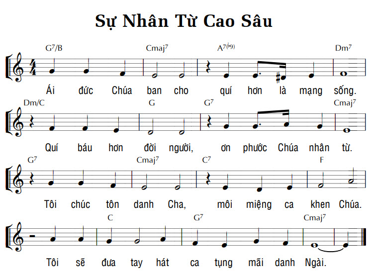 1. Ái đức Chúa ban cho quí hơn là mạng sống. Quí báu hơn đời người, ơn phước Chúa nhân từ. Tôi chúc tôn danh Cha, môi miệng ca khen Chúa. Tôi sẽ đưa tay hát ca tụng mãi danh Ngài.