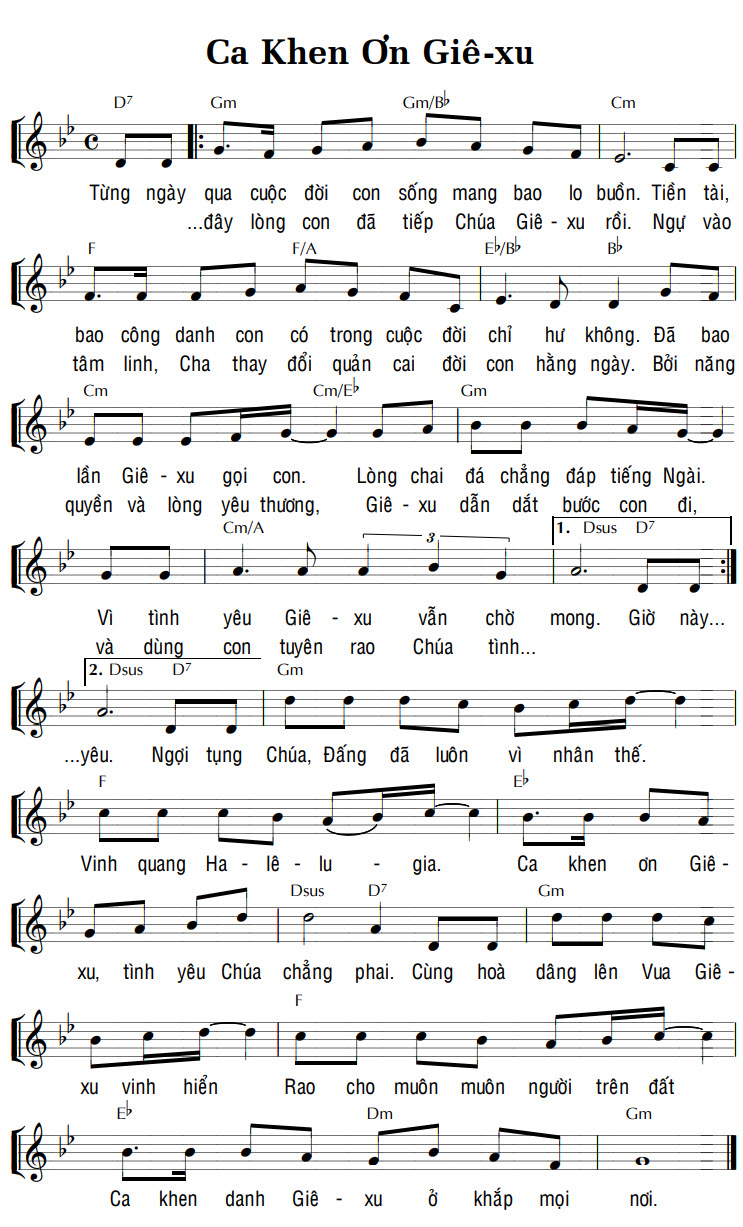 1. Từng ngày qua cuộc đời con sống mang bao lo buồn. Tiền tài, bao công danh con có trong cuộc đời chỉ hư không. Đã bao lần Giê-xu gọi con. Lòng chai đá chẳng đáp tiếng Ngài. Giê-xu dẫn dắt bước con đi, vì tình yêu Giê-xu vẫn chờ mong. Giờ này... 2. ...đây lòng con đã tiếp Chúa Giê-xu rồi. Ngự vào tâm linh, Cha thay đổi quản cai đời con hằng ngày. Bởi năng quyền và lòng yêu thương, và dùng con tuyên rao Chúa tình... yêu. Điệp khúc: Ngợi tụng Chúa, Đấng đã luôn vì nhân thế. Vinh quang Ha-lê-lu-gia. Ca khen ơn Giê-xu, tình yêu Chúa chẳng phai. Cùng hoà dâng lên Vua Giê-xu vinh hiển. Rao cho muôn muôn người trên đất. Ca khen danh Giê-xu ở khắp mọi nơi.