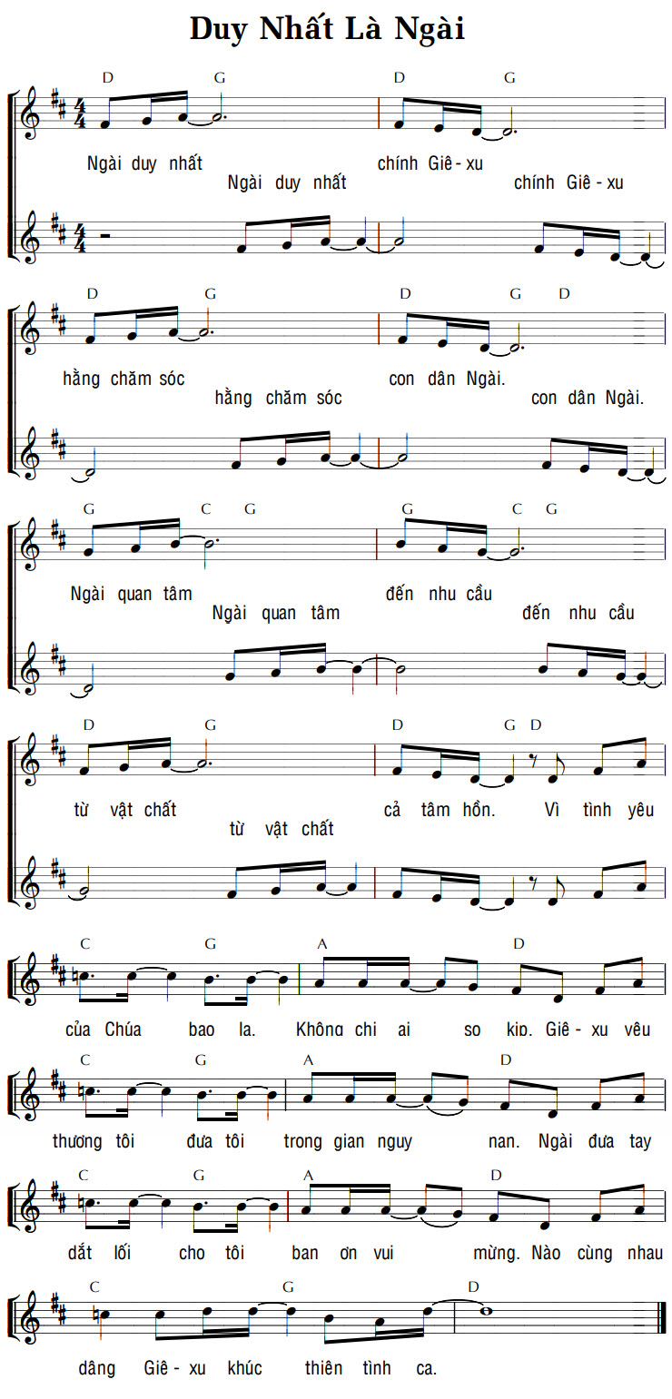 1. Ngài duy nhất chính Giê-xu, Ngài duy nhất chính Giê-xu hằng chăm sóc con dân Ngài. hằng chăm sóc con dân Ngài. Ngài quan tâm đến nhu cầu, Ngài quan tâm đến nhu cầu từ vật chất cả tâm hồn. Vì tình yêu từ vật chất của Chúa bao la. Không chi ai so kịp. Giê-xu yêu thương tôi đưa tôi trong gian nguy nan. Ngài đưa tay dắt lối cho tôi ban ơn vui mừng. Nào cùng nhau dâng Giê-xu khúc thiên tình ca.