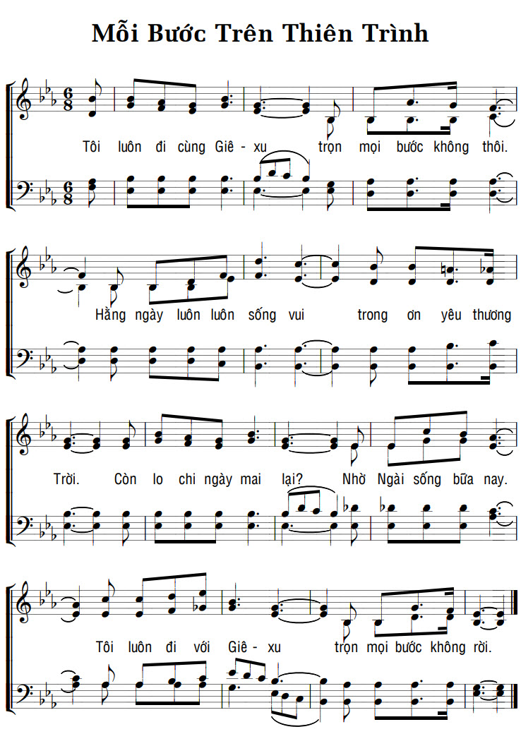 1. Tôi luôn đi cùng Giê-xu trọn mọi bước không thôi. Hằng ngày luôn luôn sống vui trong ơn yêu thương Trời. Còn lo chi ngày mai lại? Nhờ Ngài sống bữa nay. Tôi luôn đi với Giê-xu trọn mọi bước không rời.