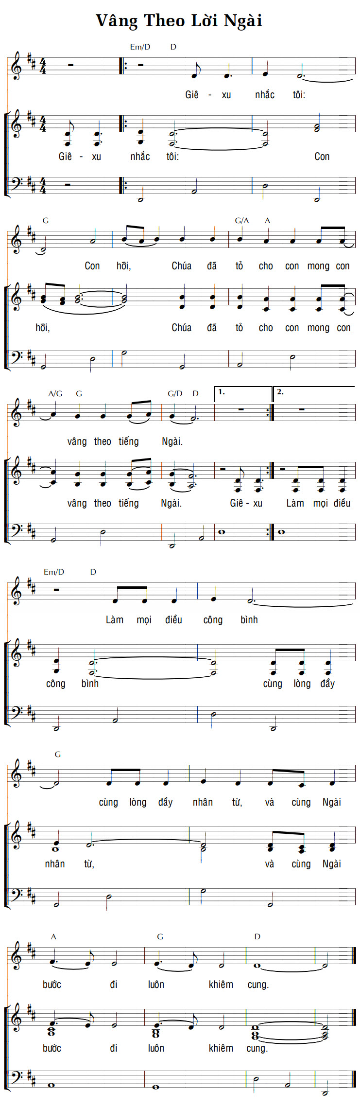 1. Giê-xu nhắc tôi: Con hỏi, Chúa đã tỏ cho con mong con vâng theo tiếng Ngài. Giê-xu Làm mọi điều công bình cùng lòng đầy nhân từ, và cùng Ngài bước đi luôn khiêm cung.