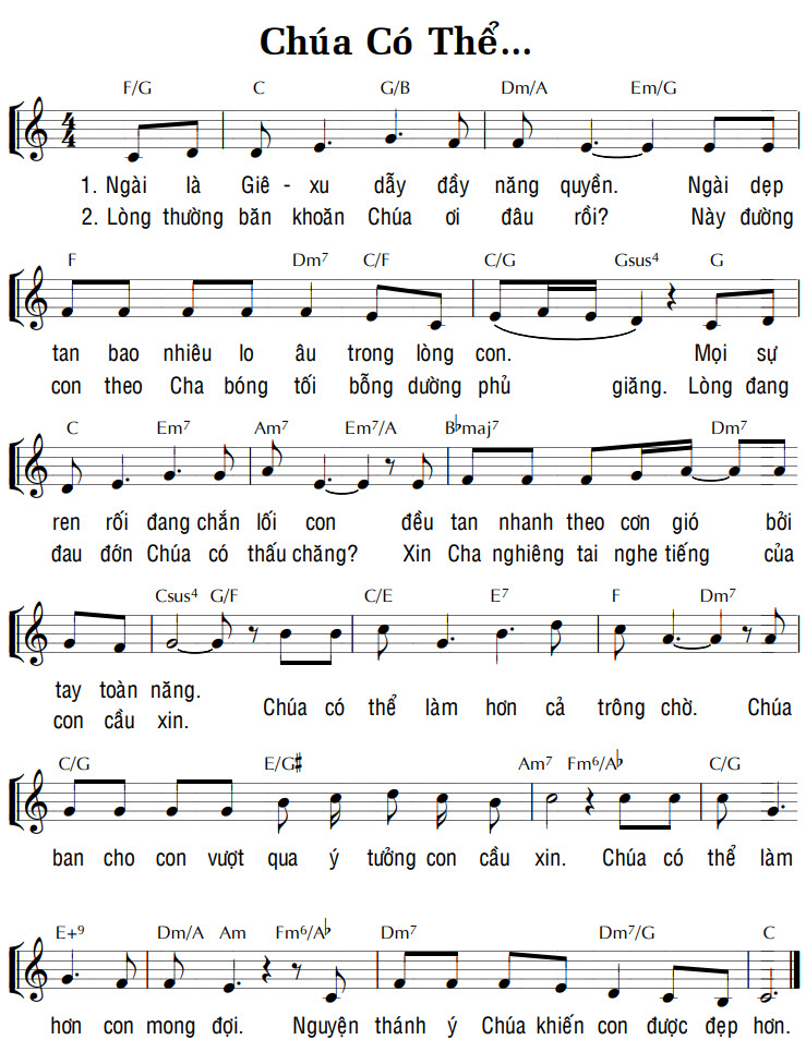 1. Ngài là Giê Xu dẫy đầy năng quyền. Ngài đẹp tan bao nhiêu lo âu trong lòng con. Mọi sự ren rối đang chắn lối con đều tan nhanh theo cơn gió bởi đau đớn Chúa có thấu chăng? Xin Cha nghiêng tai nghe tiếng của tay toàn năng. Chúa có thể làm hơn cả trông chờ. Chúa ban cho con vượt qua ý tưởng con cầu xin. Chúa có thể làm hơn con mong đợi. Nguyện thánh ý Chúa khiến con được đẹp hơn. 2. Lòng thường băn khoăn Chúa ơi đâu rồi? Này đường con theo Cha bóng tối bỗng dường phủ giăng. Lòng đang