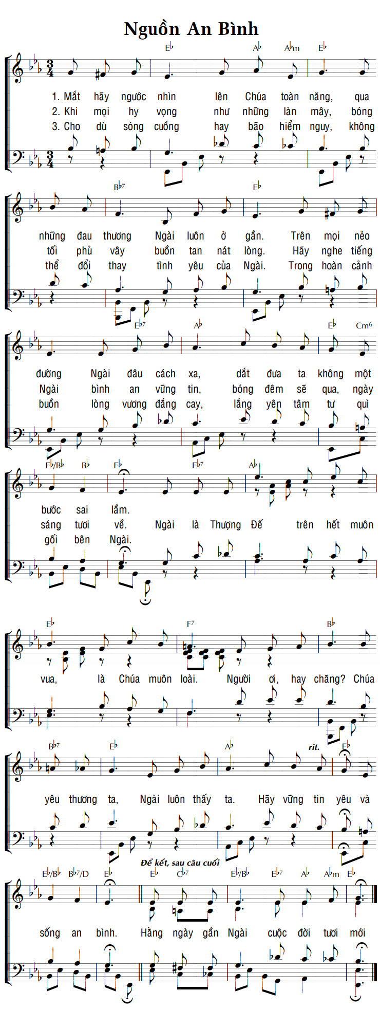 1. Mắt hãy ngước nhìn lên Chúa toàn năng, qua những đau thương Ngài luôn ở gần. Trên mọi nẻo đường Ngài đâu cách xa, dắt đưa ta không một bước sai lầm. Ngài là Thượng Đế trên hết muôn vua, là Chúa muôn loài. Người ơi, hay chăng? Chúa yêu thương ta, Ngài luôn thấy ta. Hãy vững tin yêu và sống an bình. Hằng ngày gần Ngài cuộc đời tươi mới. 2. Khi mọi hy vọng như những làn mây, tối phủ vây buồn tan nát lòng. Ngài bình an vững tin, bóng đêm sẽ qua, ngày sáng tươi về. Ngài là Thượng Đế trên hết muôn vua, là Chúa muôn loài. Người ơi, hay chăng? Chúa yêu thương ta, Ngài luôn thấy ta. Hãy vững tin yêu và sống an bình. Hằng ngày gần Ngài cuộc đời tươi mới. 3. Cho dù sóng cuồng hay bão hiểm nguy, không thể đổi thay tình yêu của Ngài. Trong hoàn cảnh buồn lòng vương đắng cay, lắng yên tâm tư quì gối bên Ngài. Ngài là Thượng Đế trên hết muôn vua, là Chúa muôn loài. Người ơi, hay chăng? Chúa yêu thương ta, Ngài luôn thấy ta. Hãy vững tin yêu và sống an bình. Hằng ngày gần Ngài cuộc đời tươi mới.
