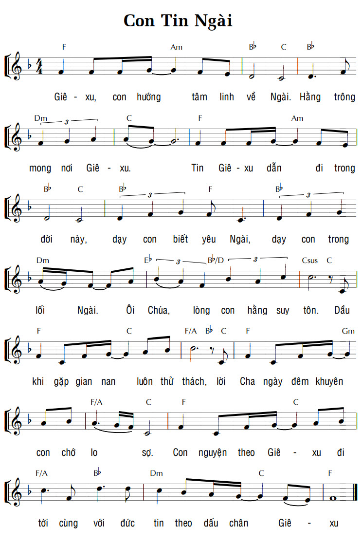 1. Giê-xu, con hướng tâm linh về Ngài. Hằng trông mong nơi Giê-xu. Tin Giê-xu dẫn đi trong đời này, dạy con biết yêu Ngài, dạy con trong lối Ngài. Ôi Chúa, lòng con hằng suy tôn. Dầu khi gặp gian nan luôn thử thách, lời Cha ngày đêm khuyên con chớ lo sợ. Con nguyện theo Giê-xu đi tới cùng với đức tin theo dấu chân Giê-xu.