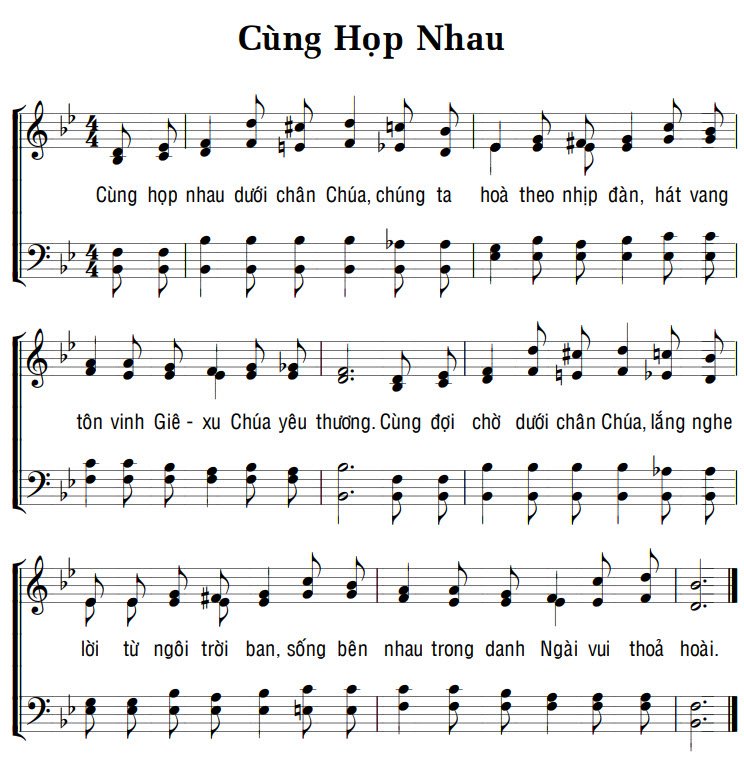 1. Cùng họp nhau dưới chân Chúa, chúng ta hoà theo nhịp đàn, hát vang tôn vinh Giê-xu Chúa yêu thương. Cùng đợi chờ dưới chân Chúa, lắng nghe lời từ ngôi trời ban, sống bên nhau trong danh Ngài vui thoả hoài.