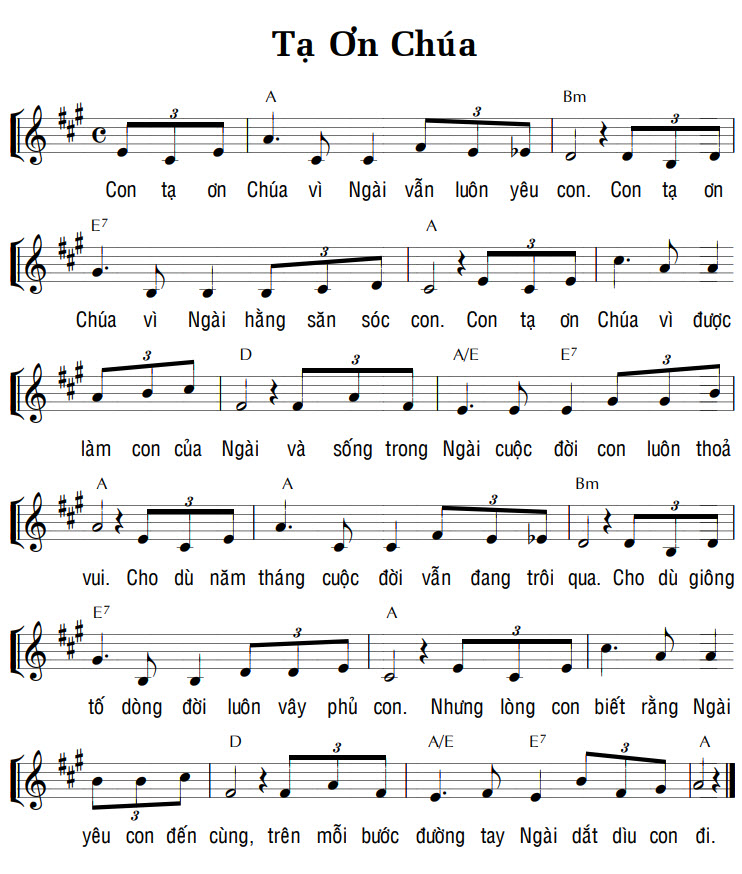 1. Con tạ ơn Chúa vì Ngài vẫn luôn yêu con. Con tạ ơn Chúa vì Ngài hằng săn sóc con. Con tạ ơn Chúa vì được làm con của Ngài và sống trong Ngài cuộc đời con luôn thoả vui. Cho dù năm tháng cuộc đời vẫn đang trôi qua. Cho dù giông tố dòng đời luôn vây phủ con. Nhưng lòng con biết rằng Ngài yêu con đến cùng, trên mỗi bước đường tay Ngài dắt dìu con đi.