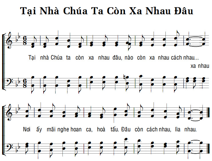 1. Tại nhà Chúa ta còn xa nhau đâu, nào còn xa nhau cách nhau... xa nhau Nơi ấy mãi nghe hoan ca, hoà tấu. Đâu còn cách nhau, lìa nhau.