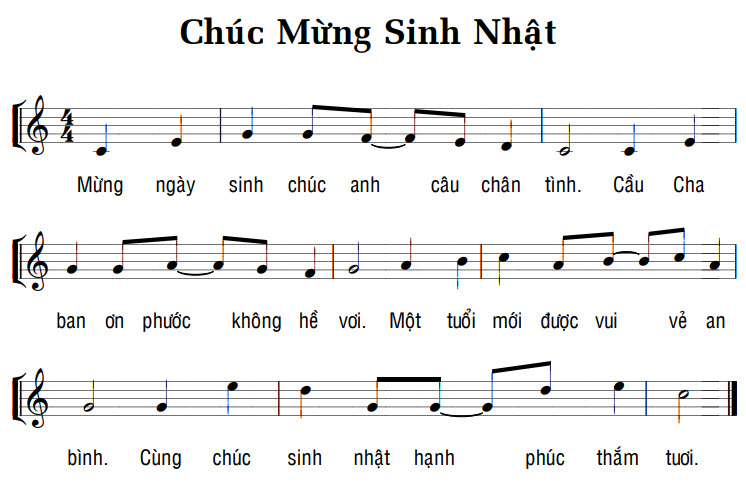 1. Mừng ngày sinh chúc anh câu chân tình. Cầu Cha ban ơn phước không hề vơi. Một tuổi mới được vui vẻ an bình. Cùng chúc sinh nhật hạnh phúc thắm tươi.