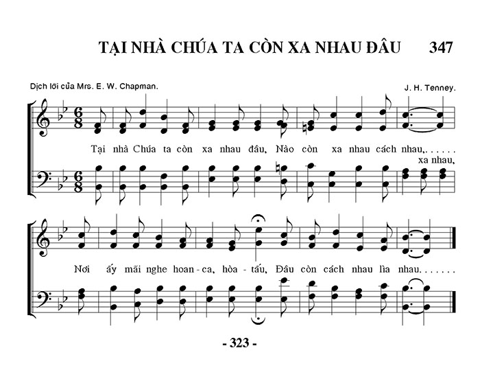 1. Tại nhà Chúa ta còn xa nhau đâu, Nào còn xa nhau cách nhau, xa nhau, Nơi ấy mãi nghe hoan-ca, hòa - tấu, Đâu còn cách nhau lìa nhau.