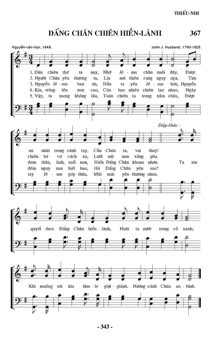 1. Đàn chiên thơ ta nay, Nhờ Jê-sus chăn nuôi đây, Được an ninh trong cánh tay, Của Chúa ta, vui thay! 2. Người Chăn yêu thương ta, Lìa nơi thiên cung nguy nga, Tìm chiên bơ vơ cách xa, Lướt núi non xông pha. 3. Nguyễn Jê-sus ban ơn, Hầu ta yêu Jê-sus hơn, Nguyễn đem thân, linh, tuổi non, Hiến Đấng Chăn khoan nhơn. 4. Kìa, trông lên non cao, Còn bao nhiêu chiên lao nhao, Ngày đêm nguy nan biết bao, Há Đấng Chăn yên sao? Ta xin 5. Vậy, ta mong không lâu, Toàn chiên ta trong năm châu, Được tay Jê-sus góp thâu, Mãi mãi yêu-thương nhau. Điệp khúc: quyết theo Đấng Chăn hiền-lành, Nuôi ta nước trong cỏ xanh; Khi muông sói kia lăm-le giựt giành. Nương cánh Chúa an bình.