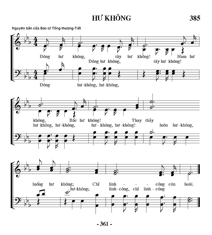 1. Đông hư không, tây hư không! Nam hư không, Bắc hư không! Thay thảy luôn hư không, luống hư không; Chỉ linh công còn hoài. 2. Đông hư không, tây hư không! Nam hư không, Bắc hư không! Thay thảy luôn hư không, luống hư không; Chỉ linh công còn hoài. 3. Đông hư không, tây hư không! Nam hư không, Bắc hư không! Thay thảy luôn hư không, luống hư không; Chỉ linh công còn hoài.