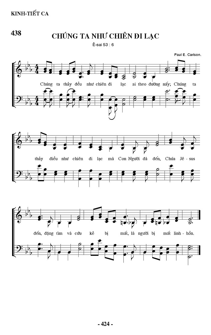 1. Chúng ta thảy đều như chiên đi lạc ai theo đường nấy; Chúng ta thảy điều như chiên đi lạc mà Con Người đã đến, Chúa Jê-sus đến, đặng tìm và cứu kẻ bị mất, là người bị mất linh - hồn,