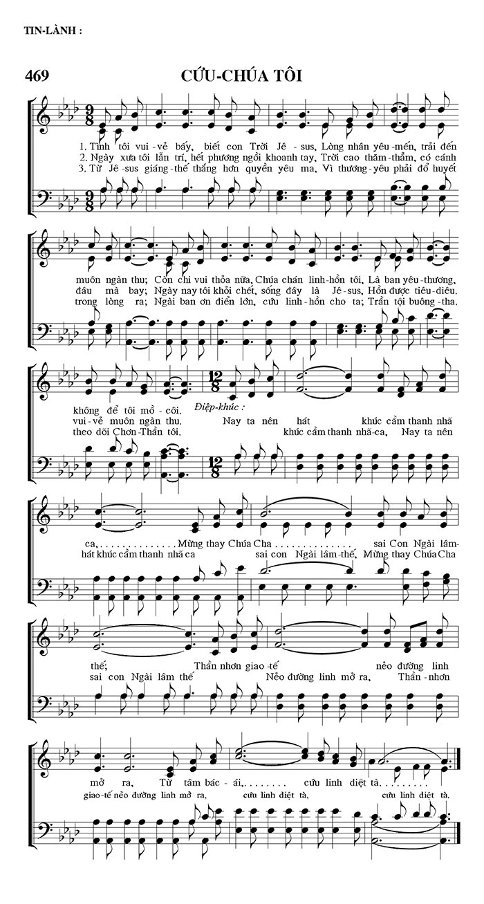 1. Tình tôi vui vẻ bấy, biết con Trời Jê-sus, Lòng nhân yêu mến, trải đến muôn ngàn thu; Còn chi vui thỏa nữa, Chúa chán linh hồn tôi, Là ban yêu thương, không để tôi mồ côi. 2. Ngày xưa tôi lẫn trí, hết phương ngồi khoanh tay, Trời cao thăm thẳm, có cánh đâu mà bay; Ngày nay tôi khỏi chết, sống đây là Jê-sus, Hồn được tiêu-diêu, vui vẻ muôn ngàn thu. 3. Từ Jê-sus giáng thế thắng hơn quyền yêu ma, Vì thương yêu phải đổ huyết trong lòng ra; Ngài ban ơn điển lớn, cứu linh hồn cho ta; Trần tội buông tha, theo dõi Chơn Thần tôi. Điệp khúc: Nay ta nên hát khúc cầm thanh nhã ca, khúc cầm thanh nhã-ca, Nay ta nên hát khúc cầm thanh nhã ca, Mừng thay Chúa Cha sai Con Ngài lâm-thế; sai con Ngài lâm thế, Mừng thay Chúa Cha Thần nhơn giao tế nẻo đường linh mở ra, nẻo đường linh Thần-nhơn giao tế nẻo đường linh mở ra, Từ tâm bác ái, cứu linh diệt tà, cứu linh diệt tà, cứu linh diệt tà.