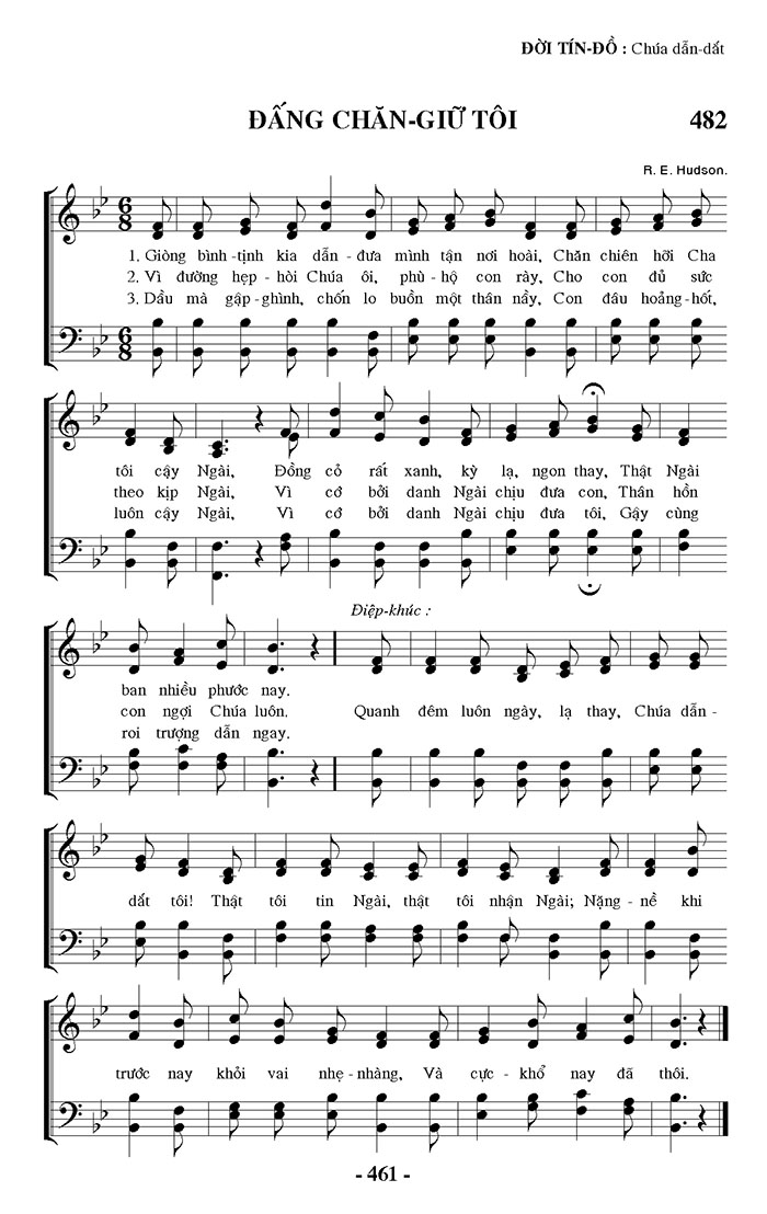 1. Giòng bình tịnh kia dẫn đưa mình tận nơi hoài, Chăn chiên hỡi Cha tôi cậy Ngài, Đồng cỏ rất xanh, kỳ lạ, ngon thay, Thật Ngài ban nhiều phước nay. 2. Vì đường hẹp hòi Chúa ôi, phù hộ con rày, Cho con đủ sức theo kịp Ngài, Vì cơ bởi danh Ngài chịu đưa con, Thân hồn con ngợi Chúa luôn. 3. Dầu mà gập - ghình, chốn lo buồn một thân nầy, Con đâu hoảng hốt, luôn cậy Ngài, Vì cơ bởi danh Ngài chịu đưa tôi, Gậy cùng roi trượng dẫn ngay. 4. Quanh đêm luôn ngày, lạ thay, Chúa dẫn - dắt tôi! Thật tôi tin Ngài, thật tôi nhận Ngài; Nặng nề khi trước nay khỏi vai nhẹ - nhàng, Và cực khổ nay đã thôi. Điệp khúc: Quanh đêm luôn ngày, lạ thay, Chúa dẫn - dắt tôi! Thật tôi tin Ngài, thật tôi nhận Ngài; Nặng nề khi trước nay khỏi vai nhẹ - nhàng, Và cực khổ nay đã thôi.