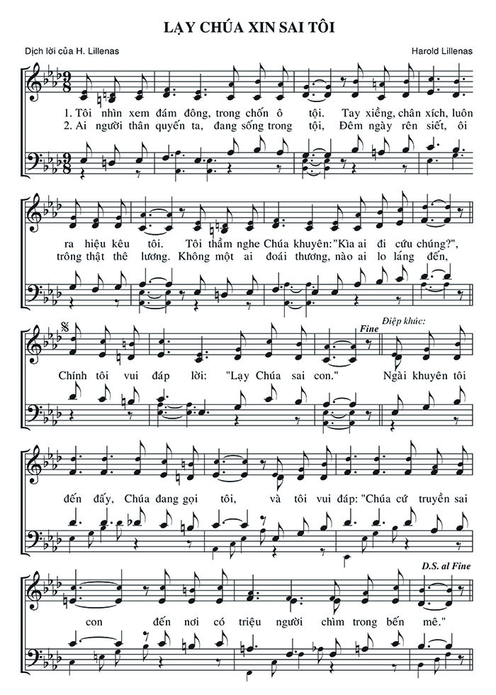 1. Tôi nhìn xem đám đông, trong chốn ô tội. Tay xiềng, chân xích, luôn ra hiệu kêu tôi. Tôi thầm nghe Chúa khuyên: "Kìa ai đi cứu chúng?" 2. Ai người thân quyến ta, đang sống trong tội, Đêm ngày rên siết, ôi trông thật thê lương. Không một ai đoái thương, nào ai lo láng đến, Điệp khúc: Chính tôi vui đáp lời: "Lạy Chúa sai con." Ngài khuyên tôi đến đấy, Chúa đang gọi tôi, và tôi vui đáp: "Chúa cứ truyền sai con đến nơi có triệu người chìm trong bến mê."