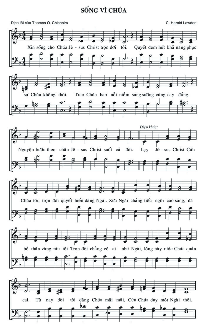 1. Xin sống cho Chúa Jê - sus Christ trọn đời tôi. Quyết đem hết khả năng phục sự Chúa không thôi. Trao Chúa bao nỗi niềm sung sướng cùng cay đáng. Điệp khúc: Nguyện bước theo chân Jê - sus Christ suốt cả đời. Lạy Jê-sus Christ Cứu Chúa tôi, trọn đời quyết hiến dâng Ngài. Xưa Ngài chẳng tiếc ngôi cao sang, đã bỏ thân vàng cứu tôi. Trọn đời chẳng có ai như Ngài, lòng này rước Chúa quản cai. Từ nay đời tôi dâng Chúa mãi mãi, Cứu Chúa duy một Ngài thôi.