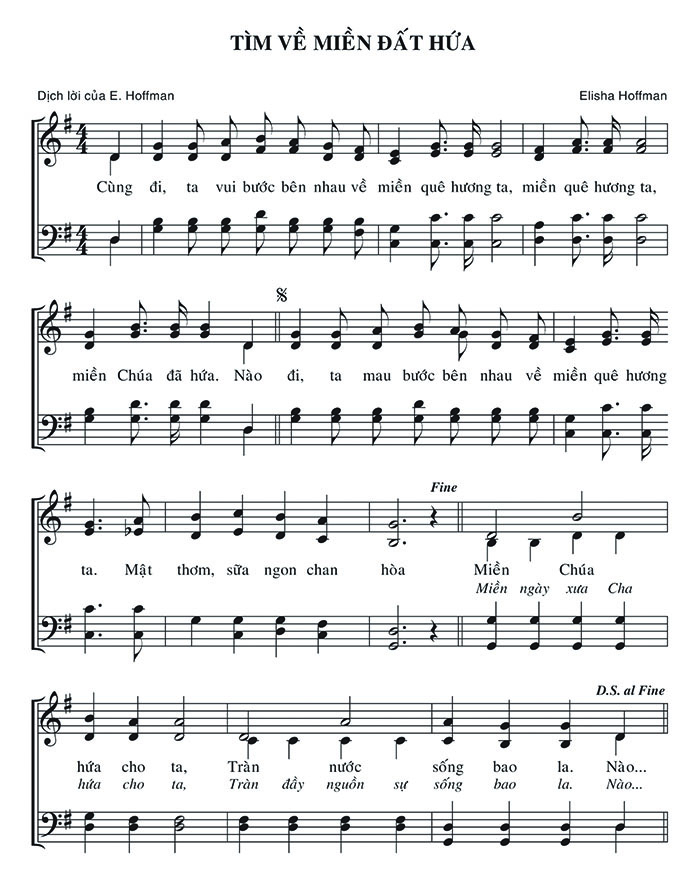1. Cùng đi, ta vui bước bên nhau về miền quê hương ta, miền quê hương ta, miền Chúa đã hứa. Nào đi, ta mau bước bên nhau về miền quê hương ta. Mật thơm, sữa ngon chan hòa Miền Chúa hứa cho ta, Tràn nước sống bao la. Nào... 2. Cùng đi, ta vui bước bên nhau về miền quê hương ta, miền quê hương ta, miền Chúa đã hứa. Nào đi, ta mau bước bên nhau về miền quê hương ta. Mật thơm, sữa ngon chan hòa Miền ngày xưa Cha hứa cho ta, Tràn đầy nguồn sự sống bao la. Nào...