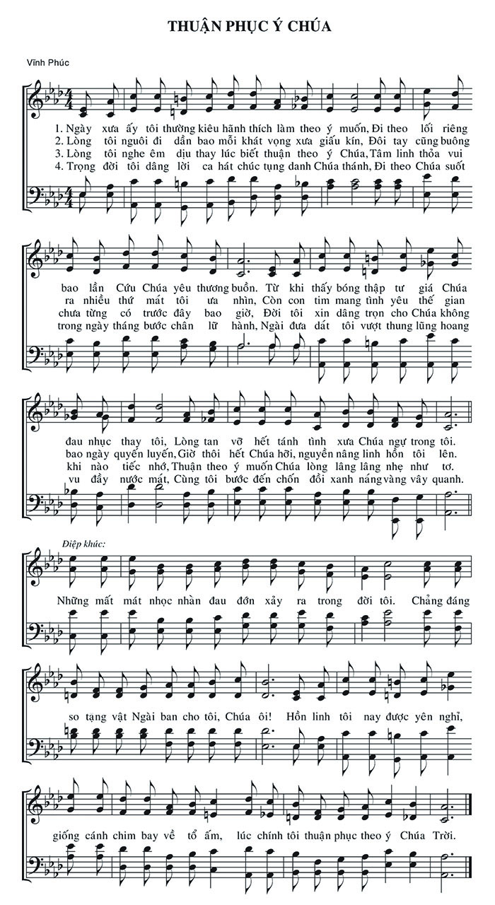 1. Ngày xưa ấy tôi thường kiêu hãnh thích làm theo ý muốn, Đi theo lối riêng bao lần Cứu Chúa yêu thương buồn. Từ khi thấy bóng thập tư giá Chúa đau nhục thay tôi, Lòng tan vỡ hết tánh tình xưa Chúa ngự trong tôi. giống cánh chim bay về tổ ấm, lúc chính tôi thuận phục theo ý Chúa Trời. 2. Lòng tôi nguôi đi dần bao mỗi khát vọng xưa giấu kín, Đôi tay cũng buông ra nhiều thứ mát tôi ưa nhìn, Còn con tim mang tình yêu thế gian bao ngày quyến luyến, Giờ thôi hết Chúa hỡi, nguyền nâng linh hồn tôi lên. 3. Lòng tôi nghe êm dịu thay lúc biết thuận theo ý Chúa, Tâm linh thỏa vui chưa từng có trước đây bao giờ, Đời tôi xin dâng trọn cho Chúa không khi nào tiếc nhớ, Thuận theo ý muốn Chúa lòng lâng lâng nhẹ như tơ. 4. Trọng đời tôi dâng lời ca hát chúc tụng danh Chúa thánh, Đi theo Chúa suốt trong ngày tháng bước chân lữ hành, Ngài đưa dắt tôi vượt thung lũng hoang vu đầy nước mát, Cùng tôi bước đến chốn đồi xanh nắng vàng vây quanh. Điệp khúc: Những mất mát nhọc nhằn đau đớn xảy ra trong đời tôi. Chẳng đáng so tạng vật Ngài ban cho tôi, Chúa ôi! Hồn linh tôi nay được yên nghỉ,