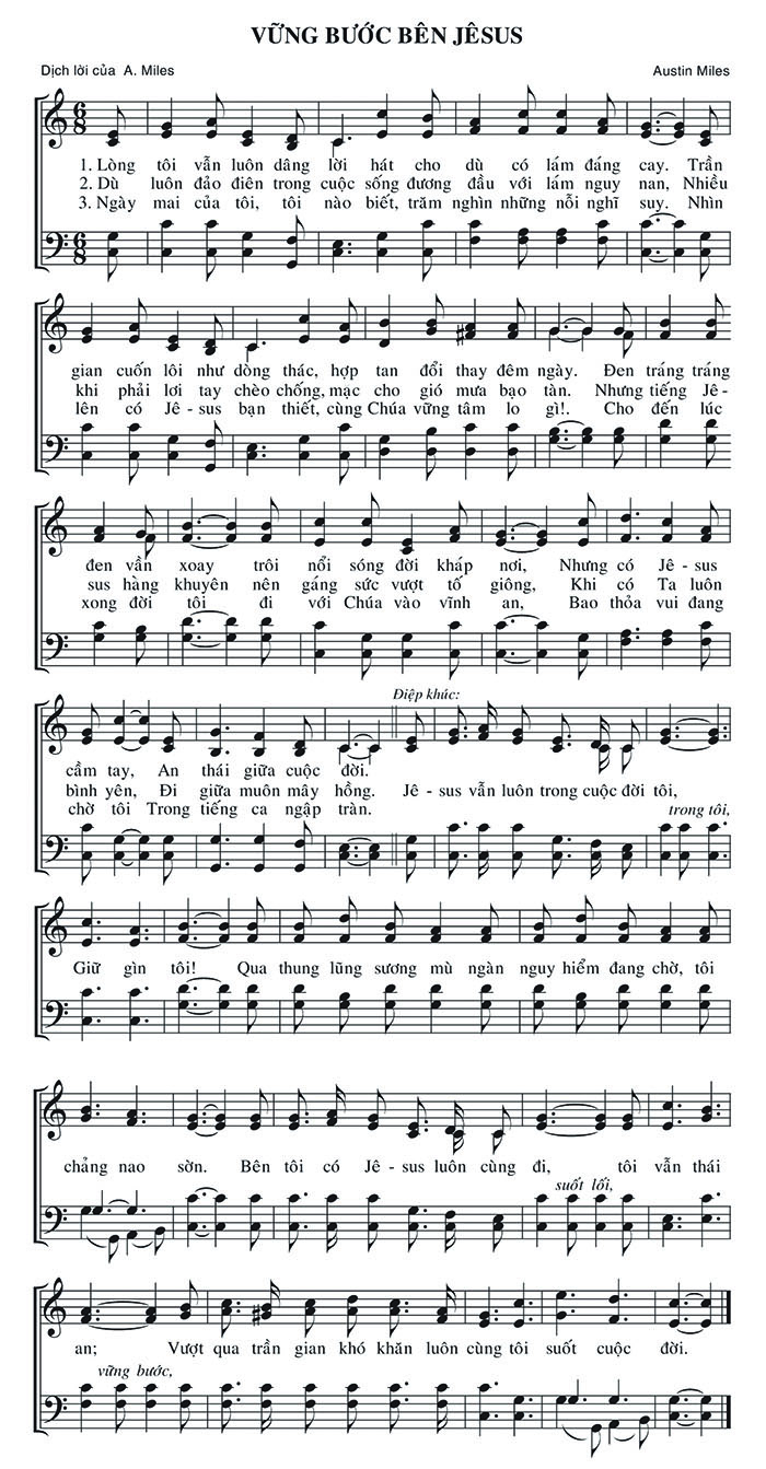 1. Lòng tôi vẫn luôn dâng lời hát cho dù có lắm đắng cay. Trần gian cuốn lôi như dòng thác, hợp tan đổi thay đêm ngày. Đen trắng trắng đen vẫn xoay trôi nổi sóng đời khắp nơi, Nhưng có Jêsus cầm tay, An thái giữa cuộc đời. 2. Dù luôn đảo điên trong cuộc sống đương đầu với lắm nguy nan, Nhiều khi phải lơi tay chèo chống, mặc cho gió mưa bạo tàn. Nhưng tiếng Jêsus hàng khuyên nên gắng sức vượt tố giông, Khi có Ta luôn bình yên, Đi giữa muôn mây hồng. 3. Ngày mai của tôi, tôi nào biết, trăm nghìn những nỗi nghĩ suy. Nhìn lên có Jêsus bạn thiết, cùng Chúa vững tâm lo gì!. Cho đến lúc xong đời tôi đi với Chúa vào vĩnh an, Bao thỏa vui đang chờ tôi Trong tiếng ca ngập tràn. 4. Jêsus vẫn luôn trong cuộc đời tôi, trong tôi, Điệp khúc: Giữ gìn tôi! Qua thung lũng sương mù ngàn nguy hiểm đang chờ, tôi chẳng nao sờn. Bên tôi có Jêsus luôn cùng đi, tôi vẫn thái an; suốt lối, Vượt qua trần gian khó khăn luôn cùng tôi suốt cuộc đời. vững bước,