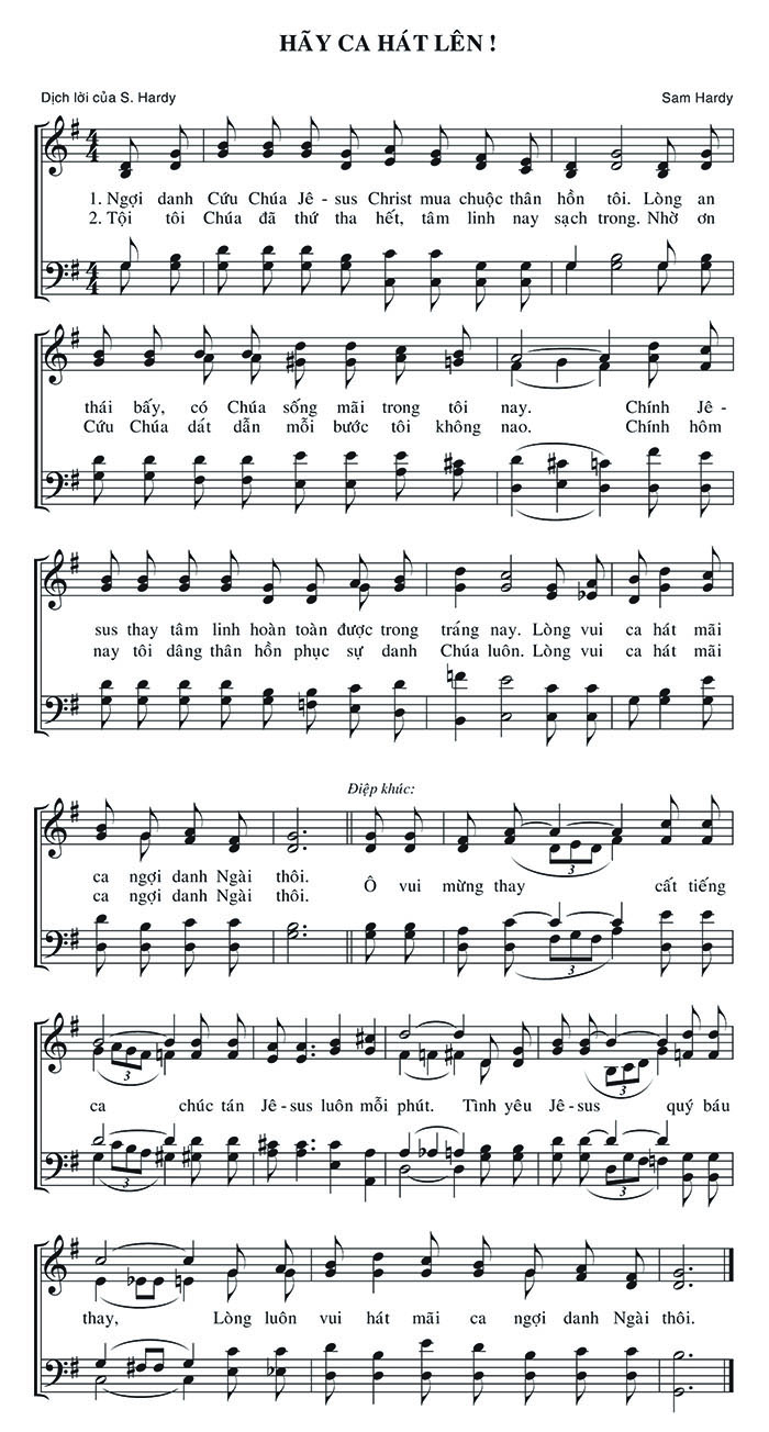 1. Ngợi danh Cứu Chúa Jê-sus Christ mua chuộc thân hồn tôi. Lòng an thái bấy, có Chúa sống mãi trong tôi nay. Chính Jê-sus thay tâm linh hoàn toàn được trong tráng nay. Lòng vui ca hát mãi 2. Tội tôi Chúa đã thứ tha hết, tâm linh nay sạch trong. Nhờ ơn Cứu Chúa dắt dẫn mỗi bước tôi không nao. Chính hôm nay tôi dâng thân hồn phục sự danh Chúa luôn. Lòng vui ca hát mãi Điệp khúc: ca ngợi danh Ngài thôi. Ô vui mừng thay cất tiếng ca chúc tán Jê-sus luôn mỗi phút. Tình yêu Jê-sus quý báu thay, Lòng luôn vui hát mãi ca ngợi danh Ngài thôi.